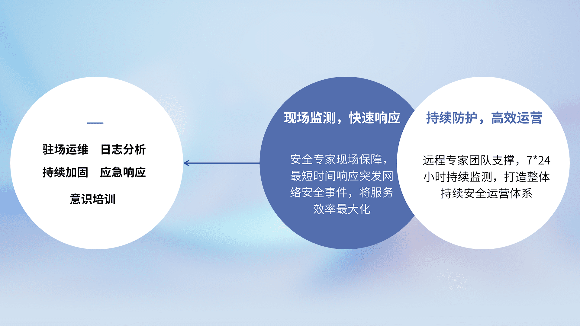 7X24小时持续监测安全事件,保持安全策略有效性,降低资产脆弱性风险,,,精准拦截黑客攻击,,减少被黑客利用的机会,,,第一时间遏制,,,,降低损失。。。。